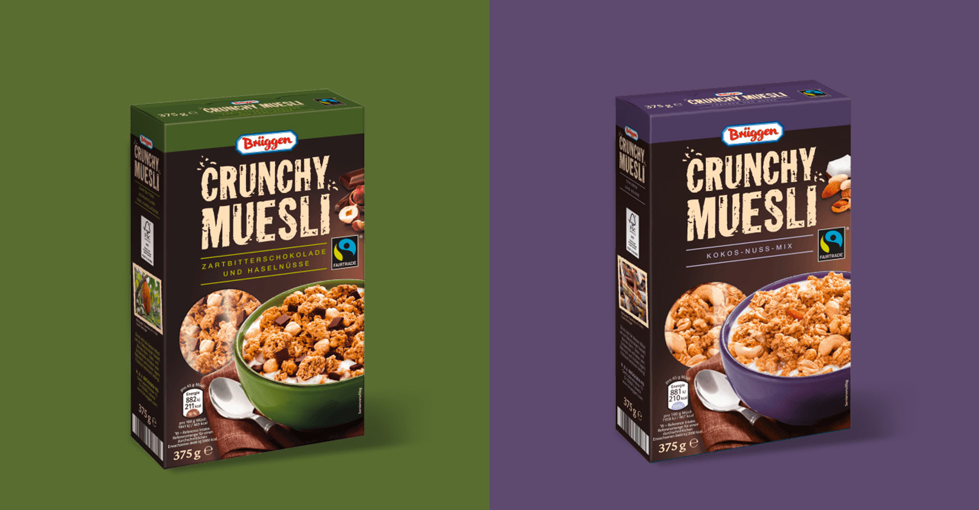 “Sustainable” design impression for delicious cereals with valuable ingredients as Fairtrade products.