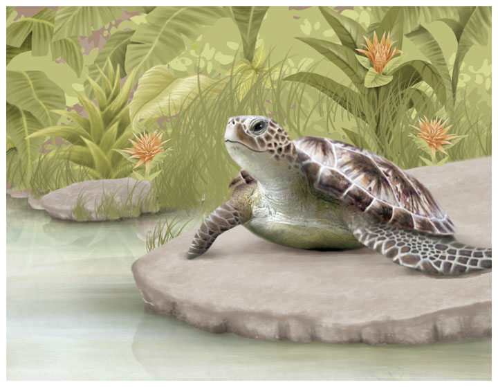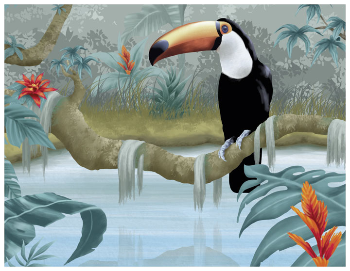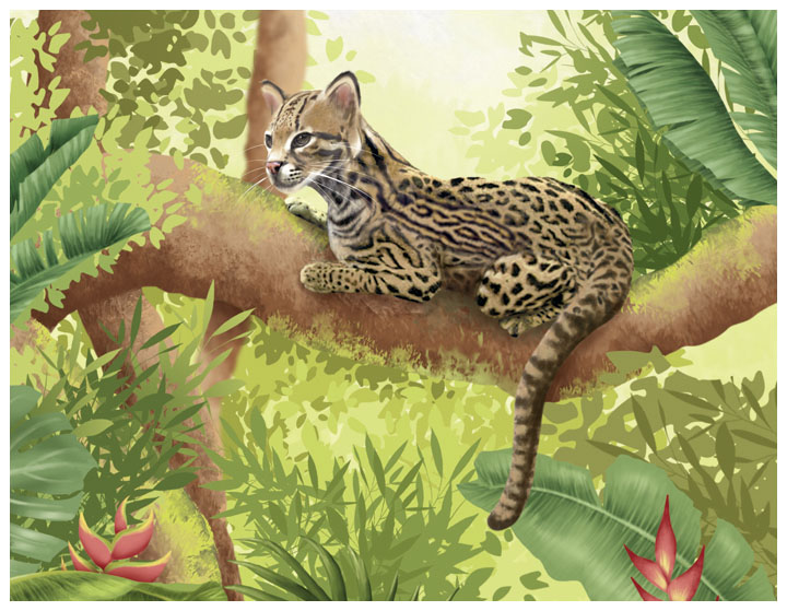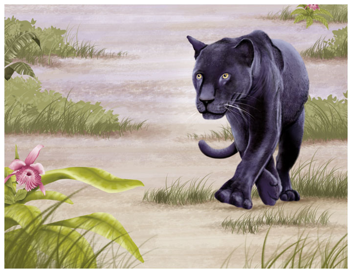 The bird of paradise from Papua New Guinea and the black jaguar from South America. Each animal is shown in its natural environment.