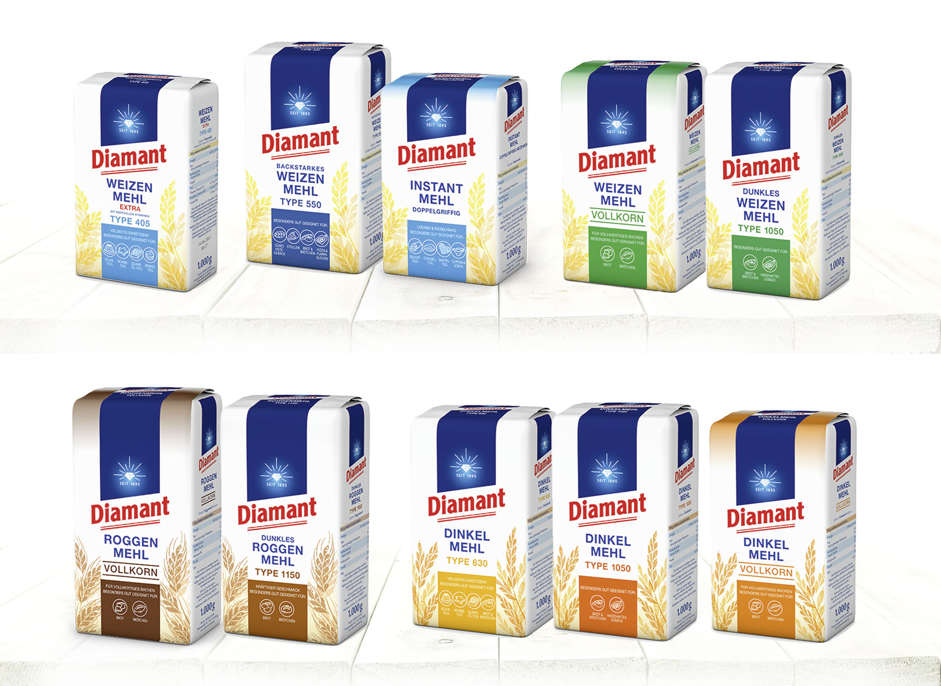 Das Sortiment mit über 11 Sorten wird über eine deutliche Farbcodierung stärker differenziert.